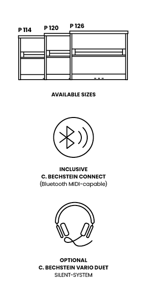 All upright and grand pianos in our Professional Series include our C. Bechstein Connect and its advantages as standard. Explore the boundless digital options waiting for you at our C. Bechstein Centers.
