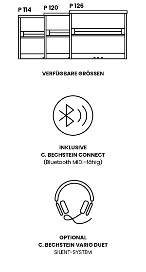 Alle Klaviere und Flügel unserer Professional Series sind serienmäßig mit unserem C. Bechstein Connect und seinen Vorteilen ausgestattet. Entdecke die grenzenlosen digitalen Möglichkeiten, die in unseren C. Bechstein Centern und dem Fachhandel auf dich warten.