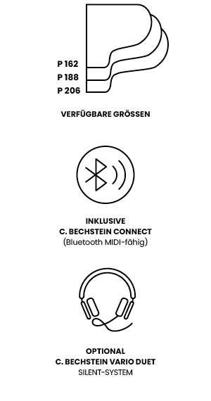 Ganz nach Wunsch kannst du dein Instrument, das bereits das C. Bechstein Connect von Haus aus mitbringt mit dem C. Bechstein VARIO duet zu einem digitalen Kraftpaket ausbauen. Mehr über alle digitalen Optionen erfährst du in unseren C. Bechstein Centren und dem Fachhandel.